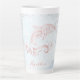 Enjoy your latte or morning coffee with a Pink Dolphin Personalised Latte Mug. Mug design features a vibrant metallic dolphin against a muted seascape adorned elegant scrolls with an area to personalise with your name. Additional gift items available with this design as well as a variety of colours.