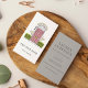 Elegant vertical business cards for home staging businesses, home stagers or interior design feature a sketched illustration of a pink front door flanked with green bushes. Personalise with two lines of custom text beneath, and add your full contact details to the reverse side.