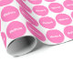 A wrapping paper designed with a pink dot pattern on a white background and name. Customise the wrapping paper with your special name or text among other options.