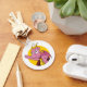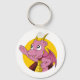 Keychain with illustration of head of a cute little pink flying dragon, in yellow circle, cute fantasy / fairy-tale design for kids by Maxi Harmony