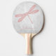 Enjoy a game of ping pong with a paddle all your own with a Pink Dragonfly Personalised Ping Pong Paddle. Paddle design features a colourful dragonfly, a soft white leafy vine against a light grey grunge damask background with an area to personalise with your name. Additional gift items available with this design as well as a variety of colours.