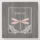 Protect your tables and counter tops with a Pink Dragonfly Rustic Personalised Stone Coaster. Coaster design features a vibrant dragonfly adorned with delicate foliage against a dark grey rustic wooden background. Additional gift items available with this design as well as a variety of colours.