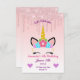 Pink Dripping Glitter/Floral Unicorn Birthday Invitation
