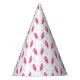 Paper party hat design features an original marker illustration of a row of pink-and-white Easter bunny ears.