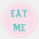 Simple modern EAT ME favour stickers in tones of pastel pink and teal.