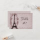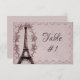 Number your reception tables with a Pink Eiffel Tower reception table card. Table card design features the Eiffel Tower adorned with a fancy flourish frame against a grunge background and postal stamp embellishment. Additional wedding stationery available with this design as well. Need help with customisation? Please contact me and I will work out the wording and details to fit this design to your satisfaction.
