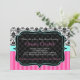 An Elegant Baby Shower invitation, Pink, black, blue and white damask with strips and polka dots. By Caroline Leskiw at Happy Pixel Designs