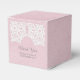 Simple and sophisticated Elegant Lace Wedding Favour Boxes featuring a white lace doily motif on a light pink faux vintage paper background. These classic and stylish boxes are perfect for a rustic wedding. Easy to customise with your wedding details. Click "Customise It" to find more personalisation options.