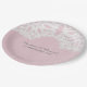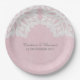 Simple and sophisticated Elegant Lace Wedding Paper Plates featuring a white lace doily motif on a light pink faux vintage paper background. These classic and stylish plates are perfect for a rustic wedding. Easy to customise with your wedding details. Click "Customise It" to find more personalisation options.