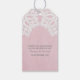 Simple and sophisticated Elegant Lace Wedding Gift Tags featuring a white lace doily motif on a light pink faux vintage paper background. These classic and stylish tags are perfect for a rustic wedding. Easy to customise with your wedding details. Click "Customise It" to find more personalisation options.