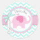 Pink Elephant and Chevron Print Baby Shower Classic Round Sticker