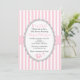 Pink Elephant Baby Shower Invitation for a Girl with white and pink stripes background.