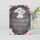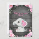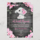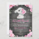 Pink Elephant Baby Shower invitation, rustic Invitation