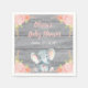 Adorable elephant baby shower napkins for a girl. Designed to match our invitations with lovely pink watercolor floral elements and a trendy baby elephant on a rustic grey wood plank background.