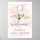 This adorable design features a sweet baby elephant sitting on a bouquet of pink and blush florals with soft greenery. The background includes a hand painted blush watercolor texture. This design also features elegant fonts in a soft grey colour palette. See the entire collection fore more matching items!