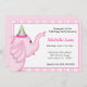 Cute pink elephant birthday invitation with an elephant wearing a pink party hat. Great birthday invitation for a girl.