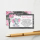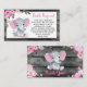 Celebrate the impending arrival of your little one with our adorable Rustic Floral Elephant Book Request Card, featuring a cute baby girl elephant adorned with a pink bow and surrounded by delicate pink flowers, all set against a rustic wooden background.