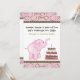 Adorable Pink Elephant 1st Birthday Party Invitation for Girls.