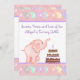 Adorable Pink Elephant 1st Birthday Party Invitation.