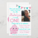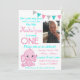 She's cute and sweet and so much fun! Pink elephant birthday invitation with balloon on the back.