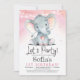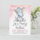 Pink Elephant Girl Birthday Party Invitation