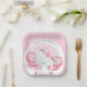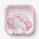 Paper plates in 2 sizes and 2 shapes feature an adorable baby elephant with pink ears and a headband of flowers. Fun for girl baby shower, girl birthday party or any special occasion. Also available in blue and green. MATCHING items in our store.
