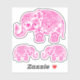pink vintage floral paisley elephant illustration with one bigger elephant and 2 smaller elephants facing each other.