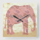 Pink Elephant with Leaves Square Wall Clock