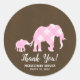 Pink Elephants Brown Trendy Modern Baby Shower Classic Round Sticker