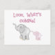 The pregnant mum to be and dad to be will love this cute maternity design T-shirt, tote bag, buttons, and other pregnancy items featuring a pink elephant and text that reads "Look What's Coming!".