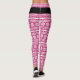 Pink elf leggings with belt for Christmas party . Funny Christmas elf leggings with girly Nordic pattern and big black belt print. Fun Holiday outfit for women and teen girls. Personalizable tights with custom background colour. Cute costume for Santa's little helper. Make your own custom printed pants for play, family gathering, xmas party, performance, show, school etc. Fun Ugly Christmas sweater pattern with snowflakes. Change to any colour your like.