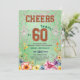 A modern design featuring a dark gold glitter number 60 with pink and emerald glitter and colorful flowers on the bottom. Customize the details for a chic Birthday Celebration.