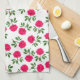 Original fine art pattern of pretty pink English tea roses by artist/designer Carolyn McFann of Two Purring Cats Studio printed on a machine-washable kitchen towel by American Mojo.