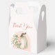 Delight your guests with this Pink Fall Pumpkin Floral Boho Arch Favour Box, featuring a hand-painted watercolor white pumpkin adorned with soft pink roses, sage eucalyptus greenery, rustic boho feathers and autumn fall foliage. The customisable text above reads “Thank You”, making each favour personal and memorable. Perfectly coordinated with the Falling in Love event suite, these boxes are ideal for baby girl showers, autumn themed celebrations, and girly boho-chic fall gatherings. Pair with invitations, favour tags, and other suite elements for a cohesive, elegant look.