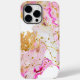 Pink Fantasy Alcohol Ink iPhone 14 Pro Max Case design with gold edge affordable unique pattern protective phone case makes your phone different and eye-catching. It is a cute fancy iPhone 14 Plus case for everyone.