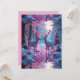 In a serene winter landscape, two ethereal deer with vibrant pink antlers stand