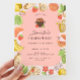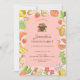Fresh from the garden! This farmers market birthday invitation features playful illustrations of fruits, vegetables, and greenery around a soft pink background, creating a warm and organic country feel. Perfect for a garden party, baby shower, or birthday celebration, this design captures the charm of locally grown produce and farm fresh fun.
