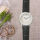 – Women’s custom wristwatch with genuine black leather strap