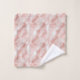 Beautiful pink and white feathers cover these lovely bathroom towels with a monogrammed center.