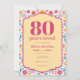 Pink Fiesta 80 Years Loved Birthday Party Invitation