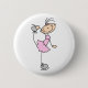 A stick figure ice skating girl with a pink dress is featured on this customisable button.