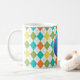 Pink Fish on Colourful Argyle Pattern Coffee Mug