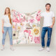 Pink flamingo and exotic pink white flowers. fleece blanket