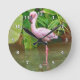 Pink Flamingo at the Lake Round Clock