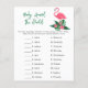 Baby shower invitation design features pink flamingo with lush green palm leaf fronds and tropical hibiscus flowers. "Aloha Baby". A tropical floral pattern with black background colour dresses up the back of the card.