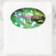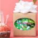 Pink flamingos in a green landscape. A striking image created from my original flamingo bird photograph. Ready to customize with your own text it is ideal for parcels, party bags etc ©Annabel Potter