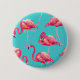 Pink flamingo birds on turquoise background 6 cm round badge