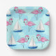 Pink Flamingo Blue Sailboat Preppy Paper Plate