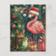 Pink Flamingo Cat & Frog Tropical Christmas Holiday Postcard