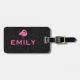 Pink Flamingo Custom text Black Paisley Luggage Tag
